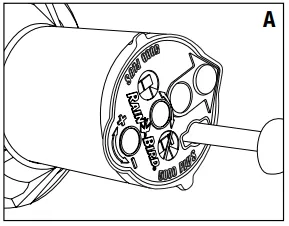 Pull up the turret and turn it counterclockwise to the left trip point. CAUTION: If the rotor does not turn easily to the left, first turn it clockwise to the right trip point. Rotate the entire case to the desired fixed left position or unscrew the cap and pull out the assembly. Rotate the internals to realign the left trip point to the desired position and reinstall.