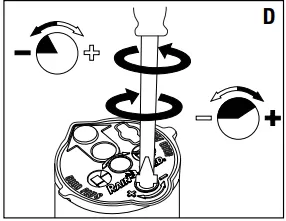 2a. Turn the screwdriver clockwise (+) to INCREASE the arc.